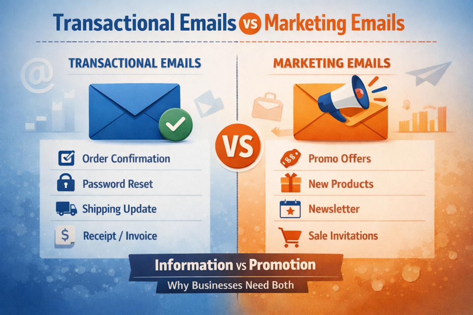 When people hear the word “email marketing,” they often think every business email is the same. But in reality, there are two very different types of emails businesses send every day: transactional emails and marketing emails.